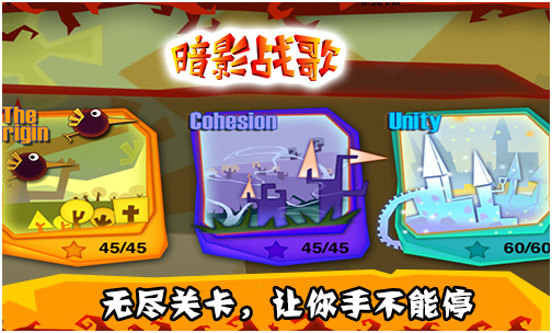 游戏的操作也别具一格,《暗影战歌》一改传统手游桩式战斗形式,全新植入了大量的操作玩法,玩家在战斗中可以自由的操控角色,释放技能,火力集中克敌、躲避敌人攻击……玩家指指点点,随心勾画“ /、△、□、○、z ”五种图形,就能创造出骁勇善战的神兵天将,降妖除魔与各路妖孽一决高下。随机应变排兵布阵,打造最强阵容出击;升级兵士获取神力,铸造铜墙铁壁防御;运用不同策略,成就超神传说。
