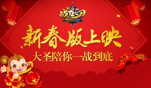 猴赛雷!《战龙之刃》国战手游,新春版震撼上线!迎新年,一切都要新到底!《战龙之刃》春节特别版上线,为主公带来不一样的国战体验:新春版主城新装,为主公带来春节的喜庆;生肖猴年,怎么能少了大圣呢,你看康康都已经和全国人民问好啦,战龙大圣也来啦(妖怪哪里逃~)。更有春节集字,拿元宝等着主公们呢,加入《战龙之刃》提前闹春节!