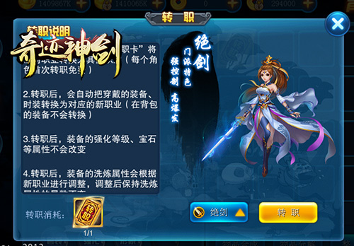 相信大家对于转职系统的复杂程度和等级限制,起码已经起了不止一次轻生的念头了!但是《奇迹神剑》的转职系统只需要40级,转职按钮就在背包界面,立刻转也可以,稍后再转也可以,就是任性!