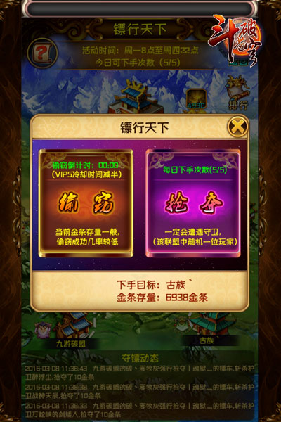 说起猴年斗破玩家最期待的事情是什么?斗破菌一猜就知道是游戏内的联盟劫镖了,在数万斗破玩家的热切期待下,劫镖已经上线有一段时间了。看着很多玩家运用劫镖开启了猴年第一桶金,斗破菌也十分开心,一起来看一下游戏内劫镖盛况吧。