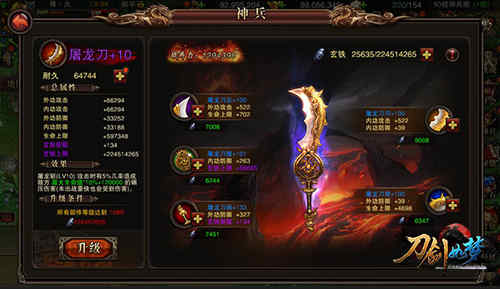 神器升级时会获得概率触发技能,如,屠龙之刃:出战英雄攻击时有5%几率打出500%碾压伤害。还可以增加神器技能强度和表现。而神器和部件强化则会提升攻防血基础属性。