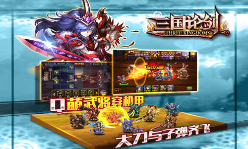 《三国论剑》采用2D像素画法,角色Q萌可爱,场景精致细腻。武将装备更是别具一格,鲁肃一身军装演绎制服诱惑,贾诩触屏神算武器威力无敌,诸葛亮钢铁铠甲英姿飒爽,还有大刀、长矛、连环炮粉墨登场。