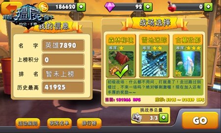 细心的小伙伴肯定已经发现了,在解锁3-1关之后,就会开放无尽赛的功能!玩家们可以在无尽赛中,选择不同的战场进行挑战!低级战场(森林秘境)、中级战场(雪地迷踪)、高级战场(古墓敌影)。难度越高的战场奖励越丰富。