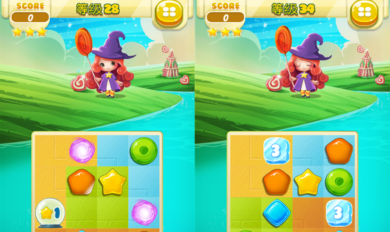 至于本作的界面与操作,小编觉得还是很良心的,首先游戏的界面非常整洁,基本上想要找到的按键选项都能够迅速找到,而跳转到游戏界面后,多余的按键都会隐藏起来,不至于打扰到玩家的游戏。操作方面,本作采用了“点击-拖拽”的操作方法,玩家点击想要选择的色块然后拖动到目标区域即可,相当的简单。