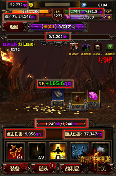 1000=1K,1000K=1M…1000T=1KT…《暗黑啪啪啪》在计算数值上完全采用这种飞跃式的数值增长系统,无论是主角成长等级还是装备随从的战斗力等,全部都是二进制的电脑算法,不仅看起来很显逼格,玩起来也是相当酸爽!作为玩家来说,看着数字飞速增长,游戏的满足感油然而生!