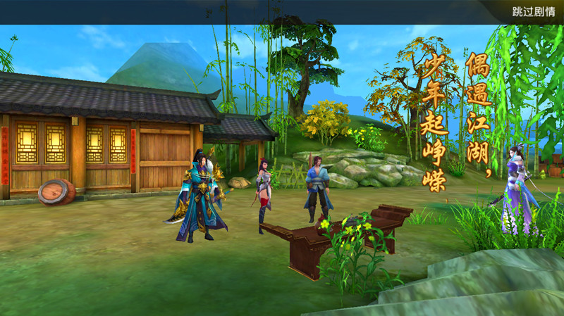 游戏画面主打明亮清新的色调,视觉明暗对比强烈,从而玩起来并不会因为场景的一成不变而乏味。由于原着整个世界观都是架构在春秋乱世之上,所以画面还是颇受玩家喜爱的中国风。人物建模相较唯美的画风来说比较硬朗,可能是写实画风的缘故,无论装备还是角色整体棱角分明。同时,本作的技能描述非常还原原着小说,两袖青蛇舞、剑九六千里等技能均改编自原着人物的着名招式。人物技能施展画面非常华丽,每一招都会对应不同的特效,并没有敷衍了事。