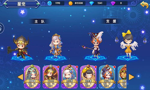 既然名字前面有个“星座”,游戏的主体内容当然是围绕西方的十二星座设计的,譬如说动物主题的“星宠”,譬如说主线章节的“圣地”命名,还结合了塔罗牌运势占卜的元素。整体美术风格Q萌可爱,配上轻松跳跃的背景音乐,《星座联萌》上手就让人感觉是专为女生准备的作品。