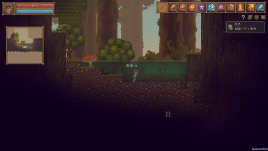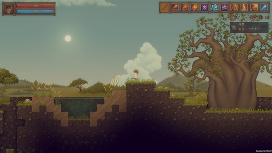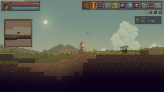 游戏一开始可以选择人物的发型和瞳色,不过少了发色的调整,人物看起来还是会比较单一,建议后续可以加入。正式进入游戏后,画面给人耳目一新的感觉,同样是像素风格,但画质比起《泰拉瑞亚》等同类游戏有了十足的提升,整体画风清新独特、又带有点萌萌的感觉,打造起来的建筑更是别致雅观,似乎天然自带着一丝艺术气息。