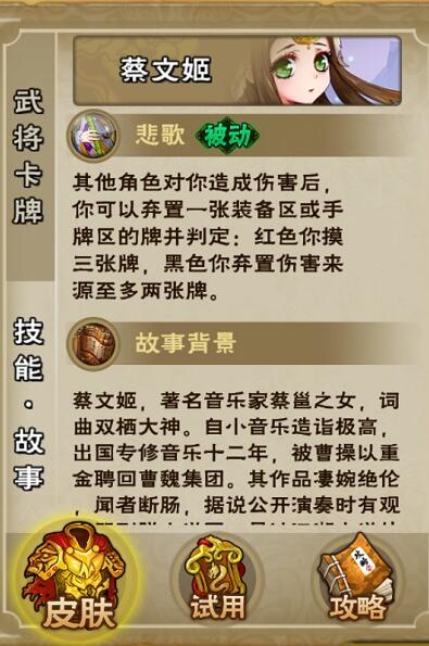 相比《三国杀》中文姬的悲歌,怒文姬不止是杀,所有伤害都能够触发悲歌进行判定,虽然无法为其他队友发动,但是在单刀会这种1V1的模式反而更加适用!