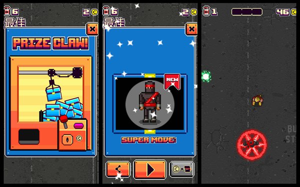 每当跑过一定距离,我们的小哥就会定点丢下包裹,这时候玩家就能获得对应的积分与金币了。金币一方面可用于复活,还能用于启动娃娃机随机解锁新的角色。例如西部牛仔,大招双枪乱射,再例如日本忍者啦,必杀奥义无双!