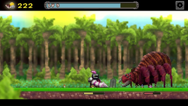 为什么这么说呢,玩家在击杀怪物后是可以获得大量的金币奖励。游戏中每过一段距离就会遇到勇者商店,玩家可以使用获得的金币提升自己的攻击、暴击、防御以及速度四种属性。为什么在上面说点击任意一场冲刺呢,那是因为在你遇到不敌的BOSS时,你完全可以走回头路反复刷钱提升属性后再来一战。虽说是一款像素风的游戏,细心的玩家还是可以发现角色在提升攻击后武器外观的变化,这点精细的设计更像是个惊喜,也算是为这款游戏添了不错的一笔。