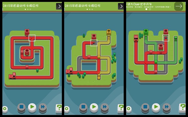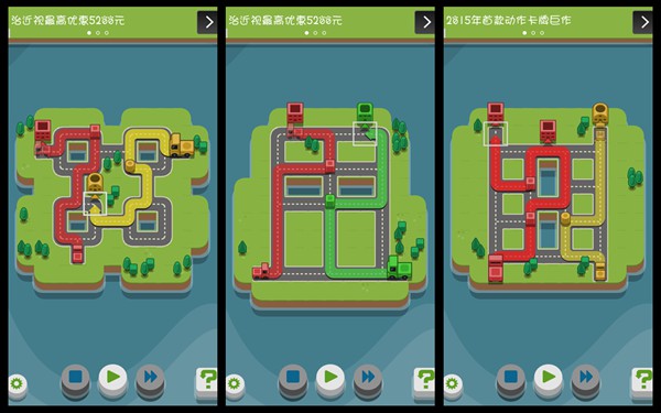 游戏最初,玩家需要考虑的仅仅是道路上的选择,如何在内心接近完美是此作的唯一把关。但随着关卡推进,运输车辆的增多,则出现了抢占道路的情况。例如同一条道路如果被辆车提前占据,那么其他车辆就得无法通行,怎样平衡道路间的分配又成了游戏中的一大难题。