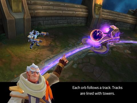 游戏当中虽然也同样的是采用推塔打基地的玩法,但是与传统的MOBA类型的游戏的还是有一定的区别的,场景主要分为上下两路,在本方防御塔与对方的防御塔中间还有一个浮在空中的圆球,可不要小看这个圆球,当玩家触发圆球之后小球将会跟随玩家一起往对方防御塔推进,并且能够帮助玩家抵御防御塔的攻击,相信对于喜欢越塔杀敌的玩家来说这个设定还是不错的,不过也要小心如果对方获得了控制权的话对于玩家来说就十分不利了。