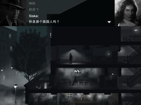 首先游戏在画面方面就显得与其他游戏区别非常大,游戏采用了类似黑白老电影的画面设计,整个画面都给人非常阴暗的感觉,哪怕是在一些开了电灯或者是使用了手电筒的场景当中也还是保持了偏暗的画风,不过游戏在细节方面制作还是非常到位的,游戏采用了iOS 8当中新加入的Metal技术,所以无论是下雨还是起雾在画面中都可以逼真的呈现。而在音效方便除了环境音非常真实外,游戏当中的配音也让玩家仿佛在看一部精彩纷呈的电影一般。