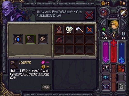 当然游戏的英雄有多个,解锁方式也同《地牢爬行》相似,到达楼层解锁人物这很公平,或者你也可以选择花费6元解锁人物。针对iOS版,游戏特别加入了两个新付费英雄,莉莉丝与半龙人。此外,游戏中的金币不会随着地牢重置减少,我们可以使用它升级一些初始属性或是购买一些初始道具提高我们的存活率,这样的商店和天赋树其实和《森林之神》很相似,像是降低商店购买价格的能力这样。
