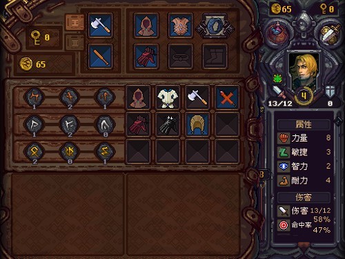 而相比于先驱者《地牢爬行》,《符石守护者》踩在前人的肩膀上完善的一整套RPG体系显然超越了前者的深度,如果说前者的休闲大于策略,那么后者在这方面的深耕就足见主创在游戏性上的诚意。《地牢爬行》的世界里,数值机制、地牢元素的设计都比较简单,肉眼可见的战斗只有攻击一项属性,基本上就是你砍我一下,我砍你一下,只要注意血量及时利用道具和补给一般不会死的太快。