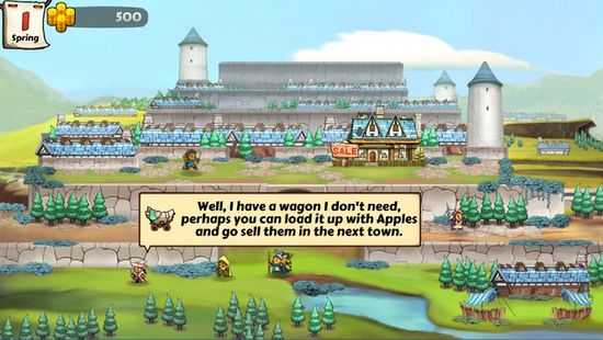 既然已经有了赚钱的工具,那么游戏的主要玩法就非常容易理解了,就是想尽一切办法赚够房款,游戏中,玩家需要从一座城堡中购买商品,在卖到另一个城堡,赚取中间的差价,而哪里的商品出售价格更高,人民更需要,玩家也可以通过城堡中路人的描述和点击城镇信息得到,所以,玩家只要经常点击获得这些信息,就可以做到消息灵通了,当然,在经商的过程中不可能一帆风顺,沿途玩家所搭乘的货车会遭到各种怪物的袭击,这就要求玩家必须用武器和魔法武装起来,抵御侵袭(看来镖师这种生意在欧洲是真的做不下去了)。当然,为了丰富游戏的玩法,开发商还在游戏中设置了如银行、城镇委托、商人协会等组织,这些都对玩家的经商起到了一定作用。此外,升级、随从等RPG元素的加入,也为游戏加分不少。