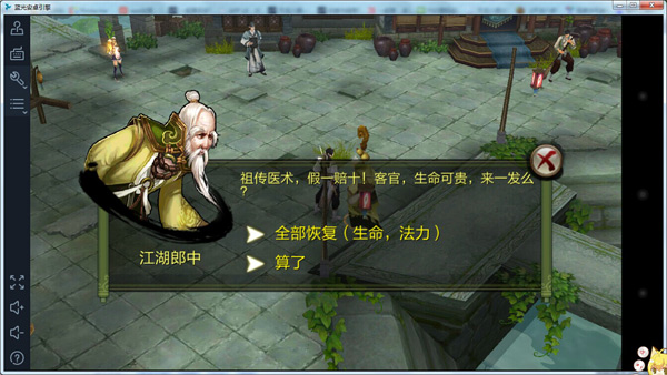 江湖郎中是苏州和洱海新增功能NPC,玩家对话可以消耗金币回复血量和法力。