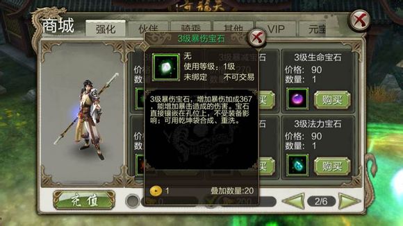天龙八部3d新宝石暴伤宝石属性