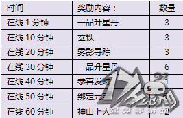 活动规则:活动期间登陆游戏即可在以下时间段领取对应的奖励。