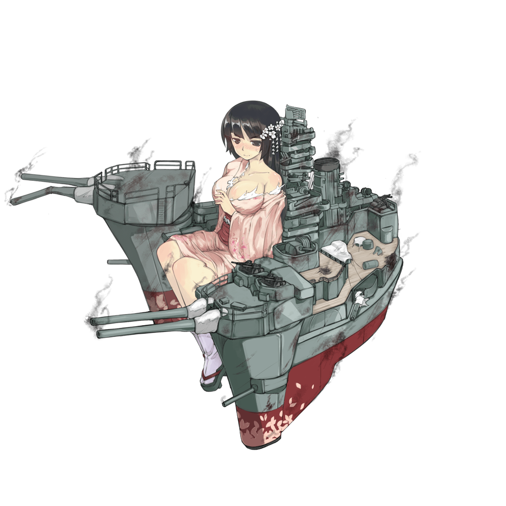 J国扶桑级超无畏舰首舰。为了追求火力,她沿中轴线布置了六座双联356毫米主炮。扶桑号进行过两次大规模的现代化改装,高耸的舰桥是其最大外观特点。她在战争中由于速度慢并没有得到重用,主要执行训练任务。在44年,扶桑号编入了编队参与莱特湾海战,在苏里高海峡遭到U军6艘战列舰的伏击,与姊妹舰山城号一同战沉。